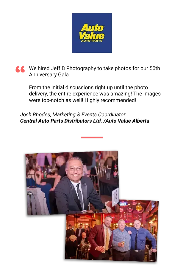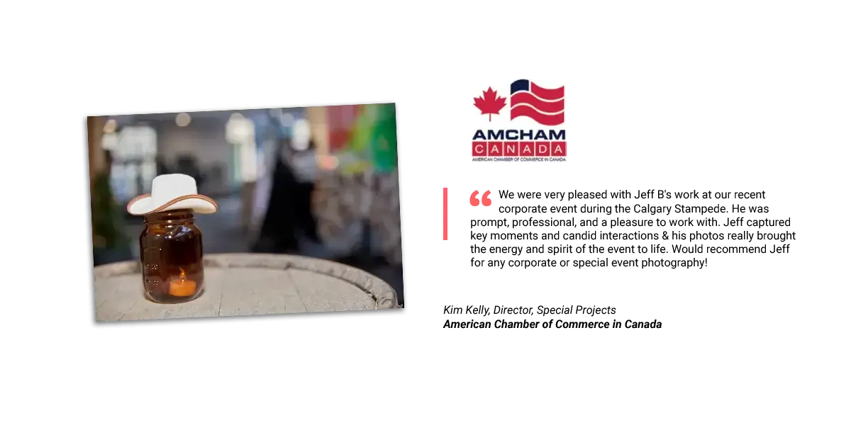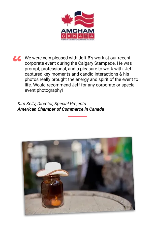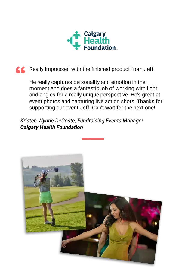 Yes. We regularly photograph conferences, trade shows, galas, corporate parties, cocktail receptions, golf tournaments, awards nights and team events across Calgary.